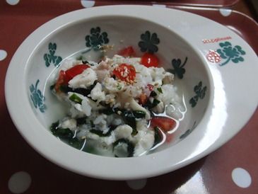 乾燥わかめ、ご飯を加え 温め直し。
