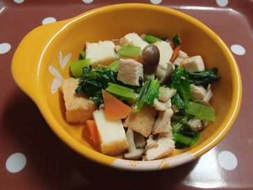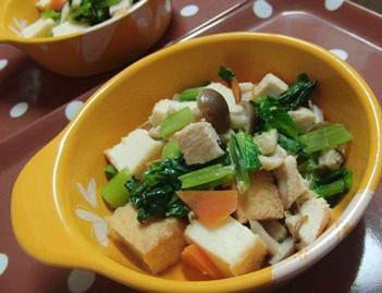 鶏肉、厚揚げを一口大に ほかの野菜も食べやすい大きさに切って
