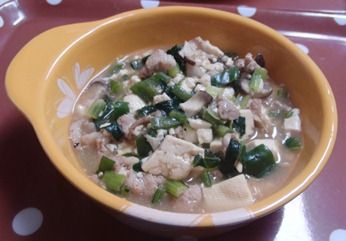 ポチッと一押しいただけると 喜んじゃいます♪豚肉、野菜を炒めたところに 豆腐、出汁を加えてグツグツ煮て