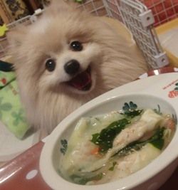 モフモフと わんごはんの コラボ写真です(笑)