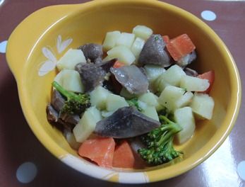 さっとボイルした砂肝と 野菜を蒸し煮。