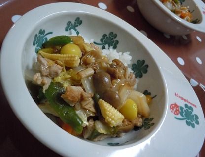 今夜はおソロい★中華丼