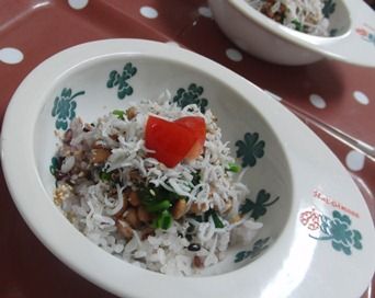 ごはんに盛り付け、しらすをふんわりトッピング。