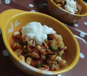 トマトの水煮、大豆の水煮、りんご酢を加え ぐつぐつ・・・としたら