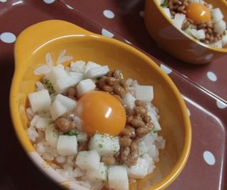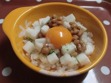 長芋を切って、 納豆と混ぜたものをトッピング。
