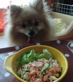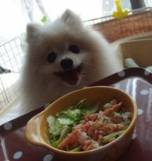 それに サラダ(犬たちには レタスのみw)を ちょいと添えて・・・