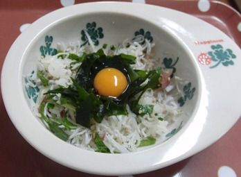わかめ、薬味のみょうが、大葉、すりごまをトッピングして