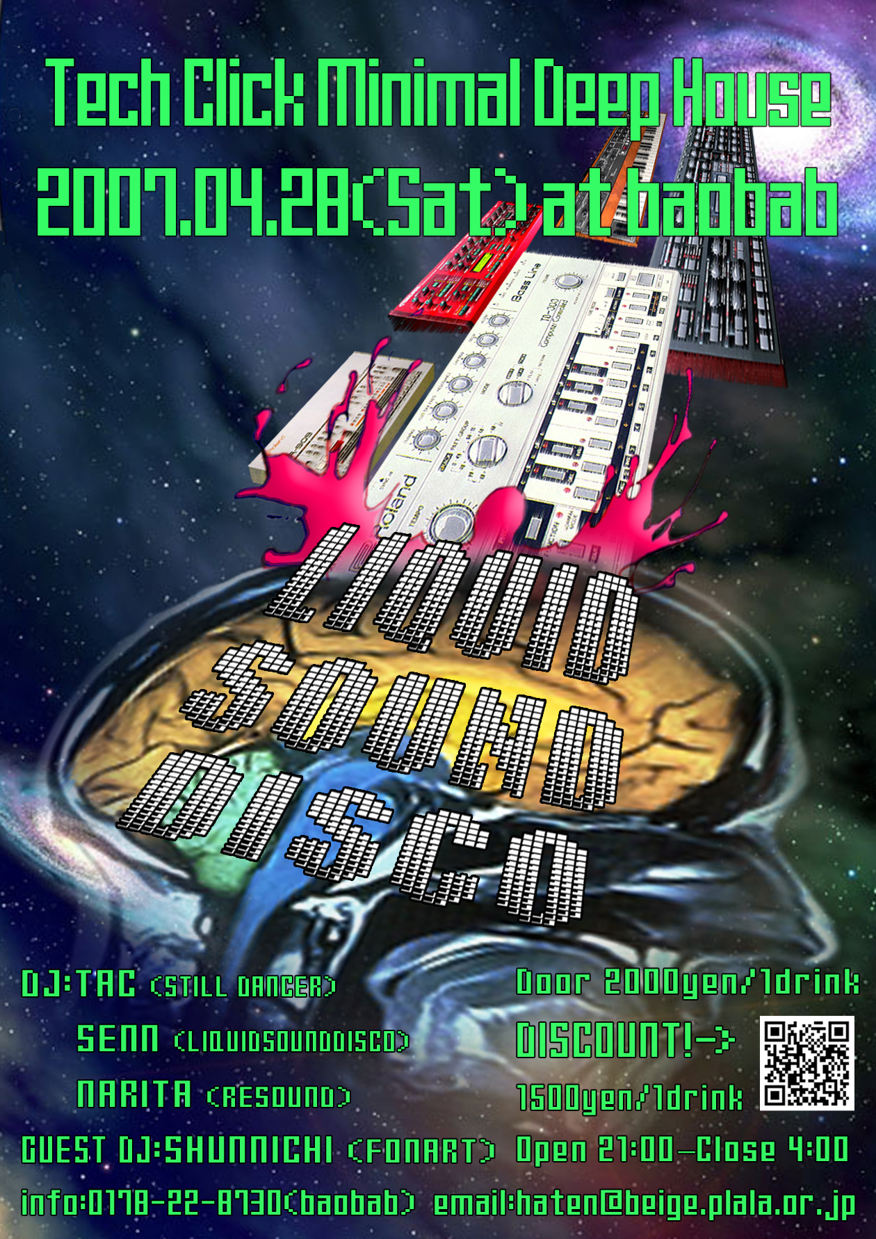 昨日は、福島NEOに友人のVAN君のパーティに行って来ました。仙台にJEFF MILLS来たときに一緒にDJして以来だから、何年ぶりの世界。福島の友人と少し飲んで、takuyaとtakuyaの友人と合流して飲んで、クラブ行って、いとうさんDJしてて、ヒューヒュー言って、踊って帰ってきた感じで、mixiメール見て、友人に書き込みして、友人のMIX聞いて、これ書いて。かなりきまってます、ツボにはまるMIXです。つうーか、日記書くのつまんね。