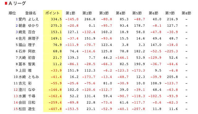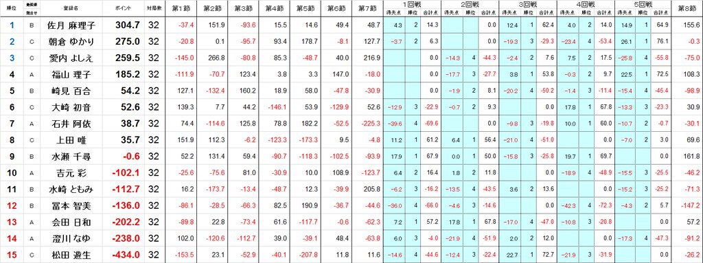 3回目の女流雀王を獲った年のリーグ戦でも、5節を終えてポイントは0.2。