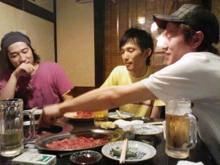 焼肉屋にて1。アッキー,ハギ,テッチャリ。