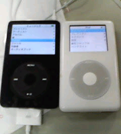 あ、ちなみに黒が新しいので(友達の)白がボクのです。画面違うし、薄さもちがうんです。しかも30GBに対してボクのは20GB…。まぁそれはともかく、ちょっとアップルコンピューターさんにはやられましたね。
