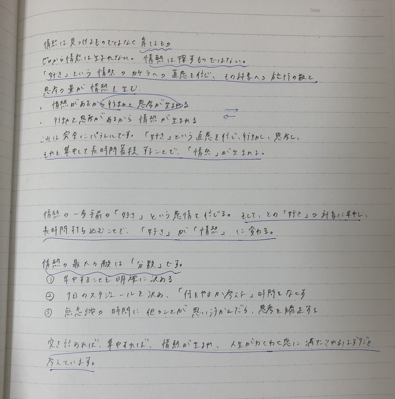 そして、私は本を読むと必ずノートに引用などを書く。こんな感じだ。