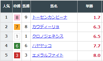 以下は昨年10月クロノジェネシスが勝ったアイビーSの最終オッズ。