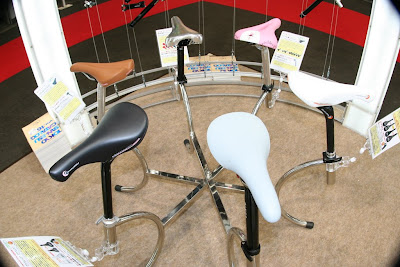 サドル周りパーツ用ディスプレイ。