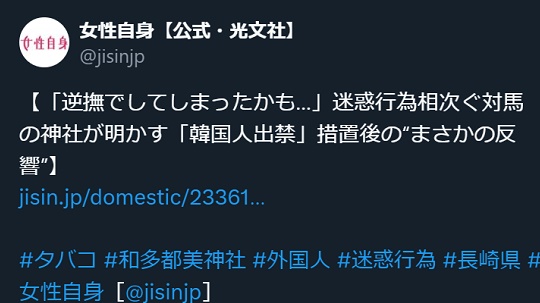 【うわ】韓国人を出入り禁止にした対馬の神社、捏造報道を指摘「『逆撫でしてしまったかもしれない』そんなこと一言も言ってません」