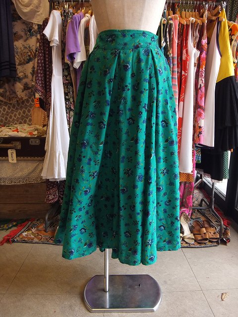 ヨーロッパ古着グリーン・オレンジ・ピンク花柄オリエンタルなRene Derhy巻きスカート