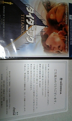 ディヴィディやっときたー、ジョージアのポイントで当選してたDVD。つかヤフオクでポイント買ったからね。16000円分買って当選したのはYahoo!ポイント5000円分とDVD2枚、大損ですね。Yahoo!ポイントがどうやら五回までしか当選しないらしく当てがはずれたっていう。もう一枚はバックトゥザフューチャーにしたのだけどいつ届くのだろう。