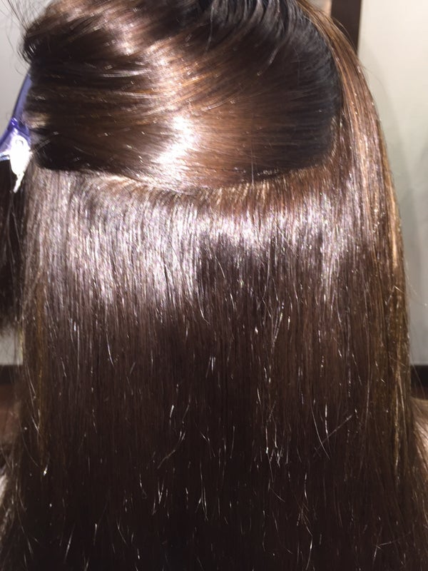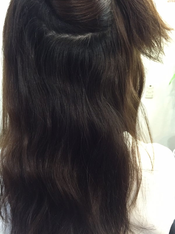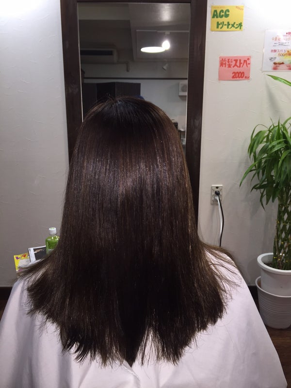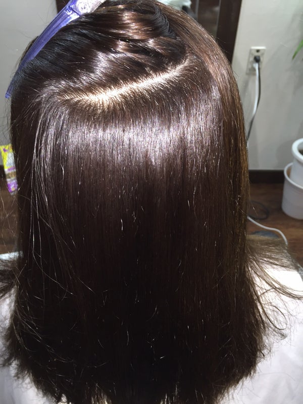約一年半前位に縮毛矯正をかけたみたいと、いろいろとカウンセリングをして、この髪の毛に合う薬剤をチョイス‼︎