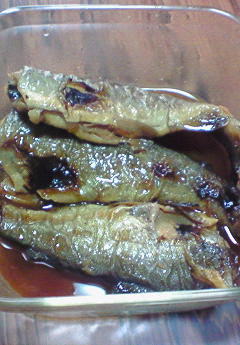 マス釣りに行った。マスを10匹ほど持って帰ってきて、さてどうする? そうだ、おみやげ物として、マスを甘露煮にしてあった。わたしも作っちゃおうっと作った。時間はかかったけれど、うまい! 身離れもよくて、良い感じ。もちろん鮎でもできる(はず)