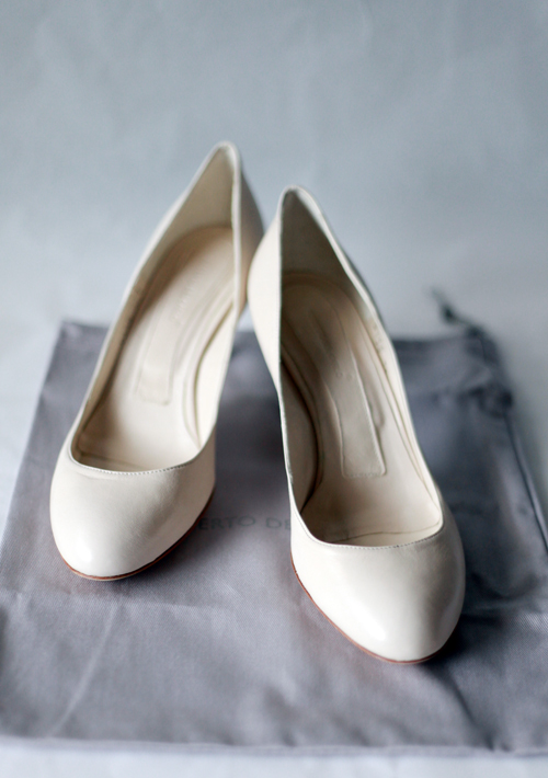 Roberto第2弾は。このヌーディーなややオフホワイトのヌメ革 パンプスです。