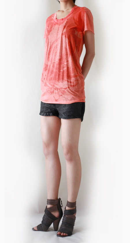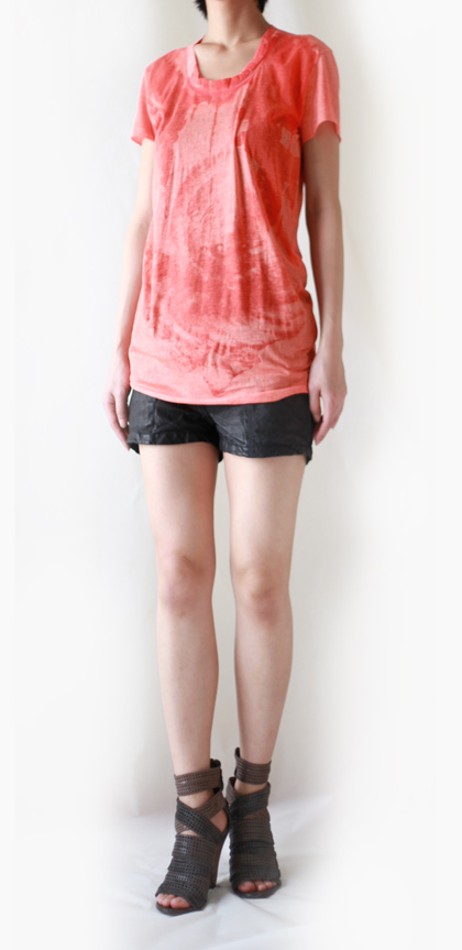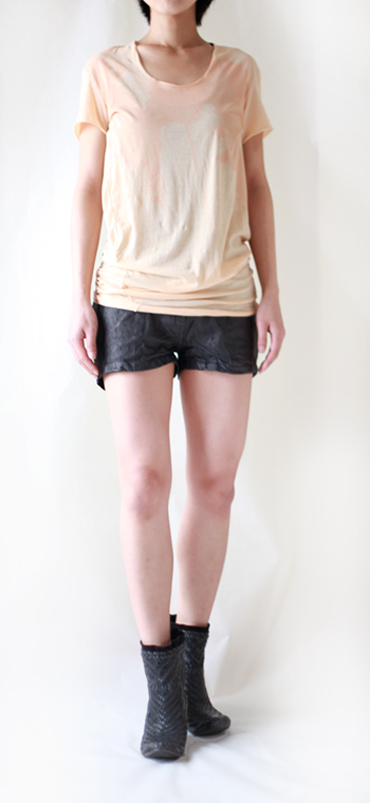 T-Shirt : ROQUE IRALIA NISTRI インナーキャミ : Best Behavior 革ショートパンツ : ROQUE IRALIA NISTRI イントレ ショートブーツ : ELISANERO