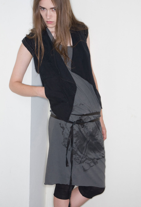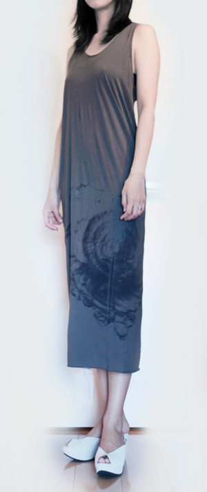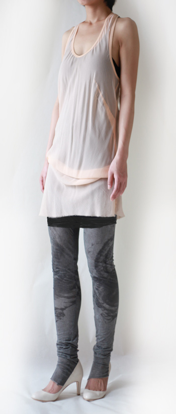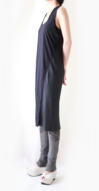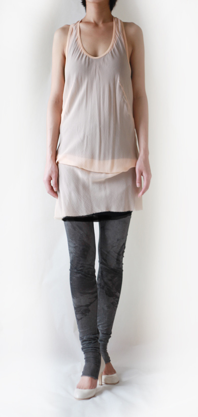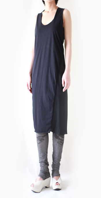 シルクコットンワンピース : ROQUE ILARIA NISTRI プリントレギンス : ROQUE ILARIA NISTRI スウェードプラットフォームサンダル : -ROBERTO DEL CARLO 左前でボディの切り返し。バックはシルク。前はコットン。肌触り抜群。
