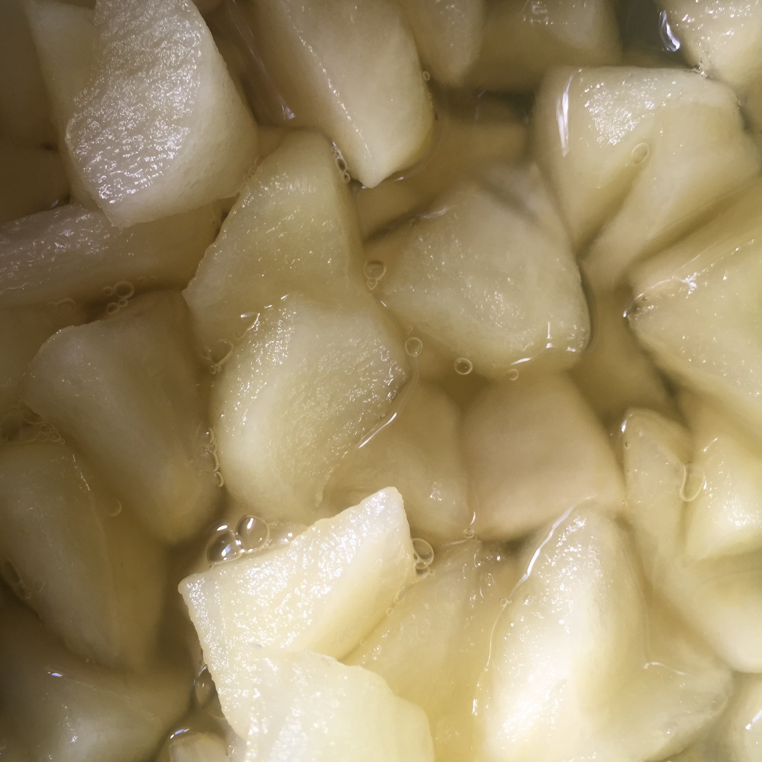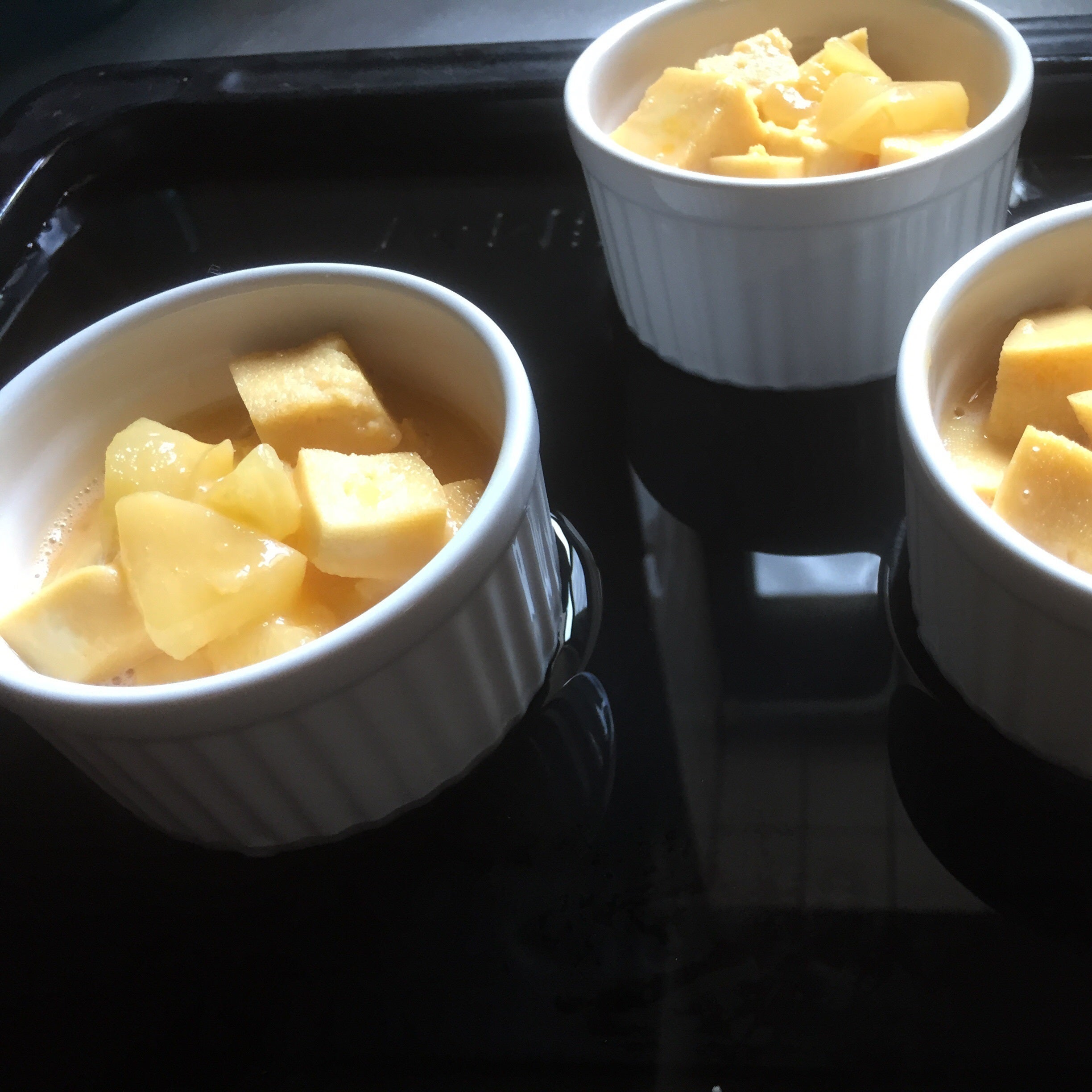 砂糖、レモン汁をいれて、フワッとラップをして、電子レンジ600Wで5分、かき混ぜて