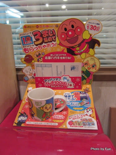キッズメニューをお願いし、1ポイントシールを3枚集めると、もれなく、アンパンマグをもらえるんですって!