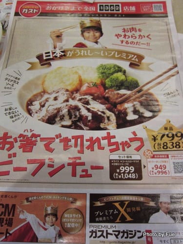 ドリンクバーを初めて開始したレストランとしても有名ですが、今度は洋食メニューの定番「ビーフシチュー」をお箸で食べる提案。