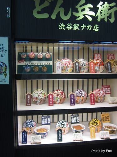 エキナカというか狭い渋谷駅のホームにあるお蕎麦屋さんは、メニューがすべて日清どん兵衛。