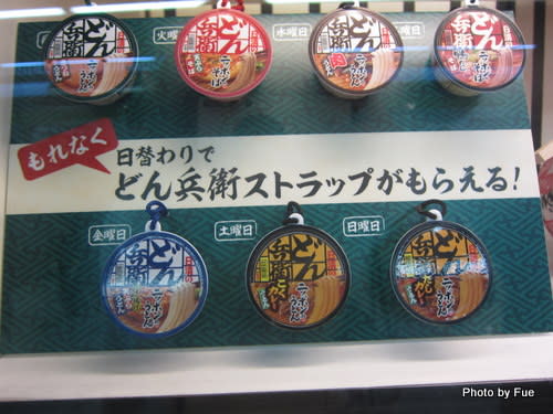 もれなく日替わりでどん兵衛ストラップがもらえる!