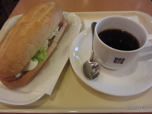 期間限定販売の『ミラノサンド タマゴとスモークベーコン~彩りサラダ~』とブレンドコーヒーをいただきながら、映画の前に軽く腹ごしらえ。