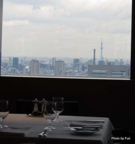 東京の風景を観ながらいただくフレンチはなかなかオツでした。