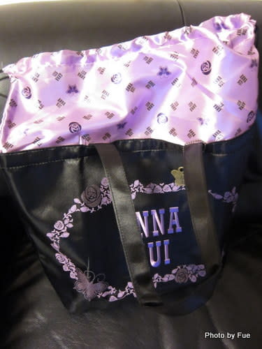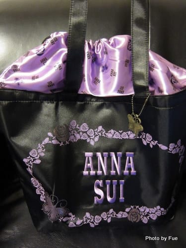 アナスイ15周年記念の豪華ロゴ刺繍、グリッター印刷、そして巾着になっているの大きめトートは使い勝手抜群です。