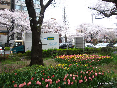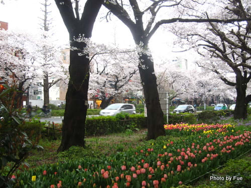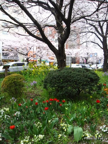国立駅前はちょうど見頃で、明日はお天気がよいので最高のお花見日和でしょう。