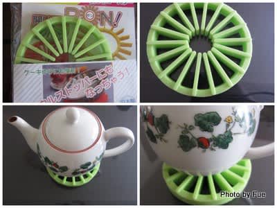 お土産にいただいた、変形する鍋敷きコースターとともに愛用中。