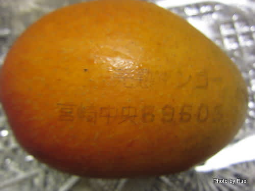 マンゴーさんに宮崎産の証明が刻印されてます。