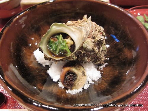 写真は今日の夜の新潟 雪家のオマカセコース さざえの壷焼き