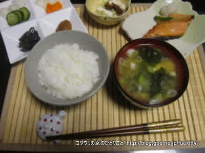 ゴハンが美味しければ、炊きたてごはんと味噌汁があればおかずは冷蔵庫のありものでOK。