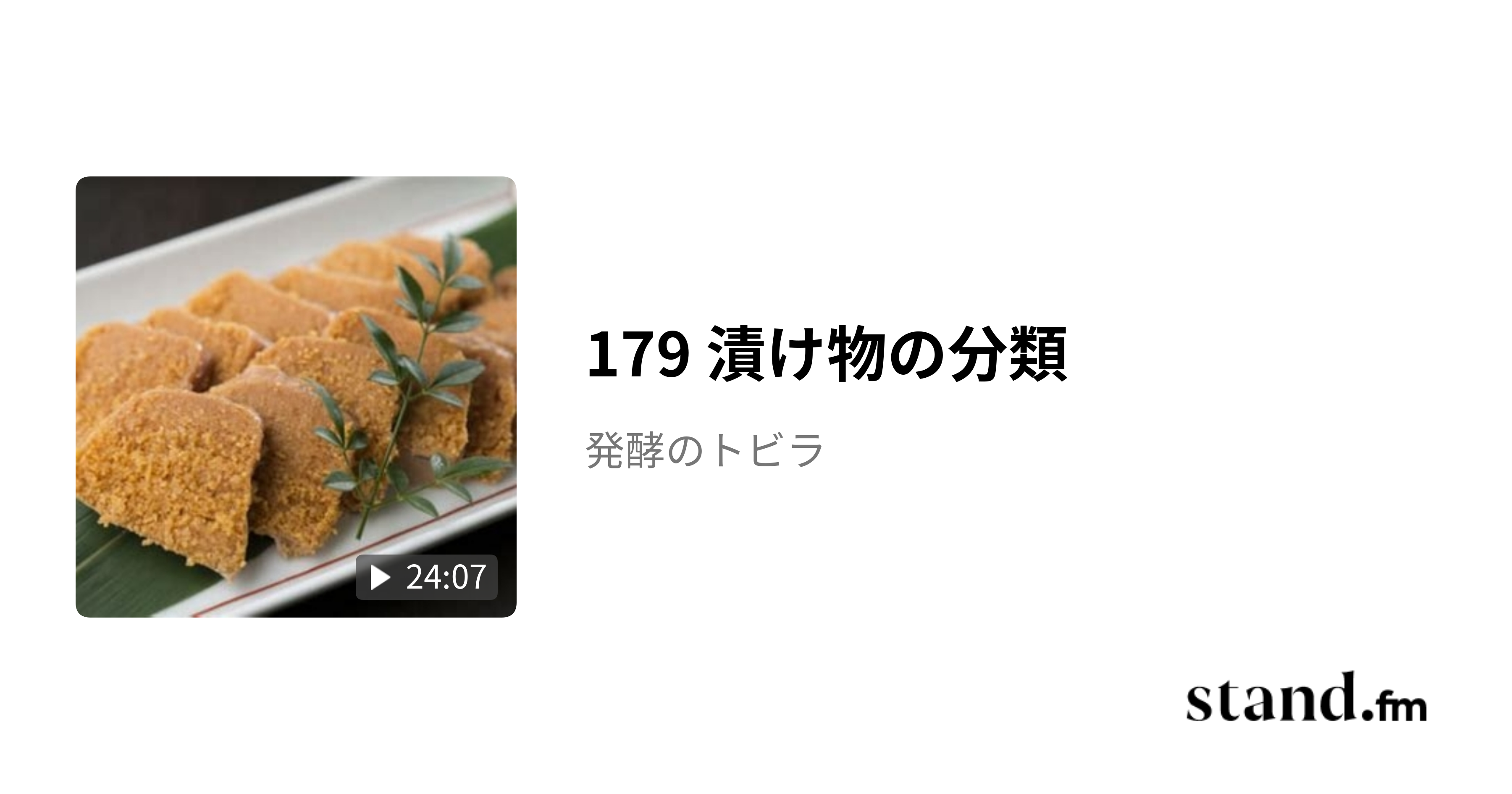 発酵ラジオ 179. 漬け物の分類 今週も発酵ラジオ配信してます♪︎stand.fm 発酵のトビラ179. 漬け物の分類179 漬け物の分類 - 発酵のトビラ | stand.fm #青醤油 #ふぐのこ糠漬け #塩 #発酵バンザイ #乳酸発酵 #無発酵漬け物 #発酵はエモいstand.fm#青醤油 #ふぐのこぬかづけ #塩 #発酵バンザイ #乳酸発酵 #無発酵漬け物 #発酵はエモい