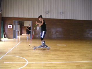 滑りに行きました。やっと、梅雨が明けましたね。みなさん、本格的な夏を休日には堪能して下さい。先日、日体大のスキー部の練習会に遊びに行きました。そこで、カービングローラーに乗ってもらったのですがローラーブレードを履いていたときと違って、カービングローラーを履いた瞬間からいきなり「ロボット」みたいなぎこちない動きに大変身!!!杵淵くんはやっぱり上手ですね。