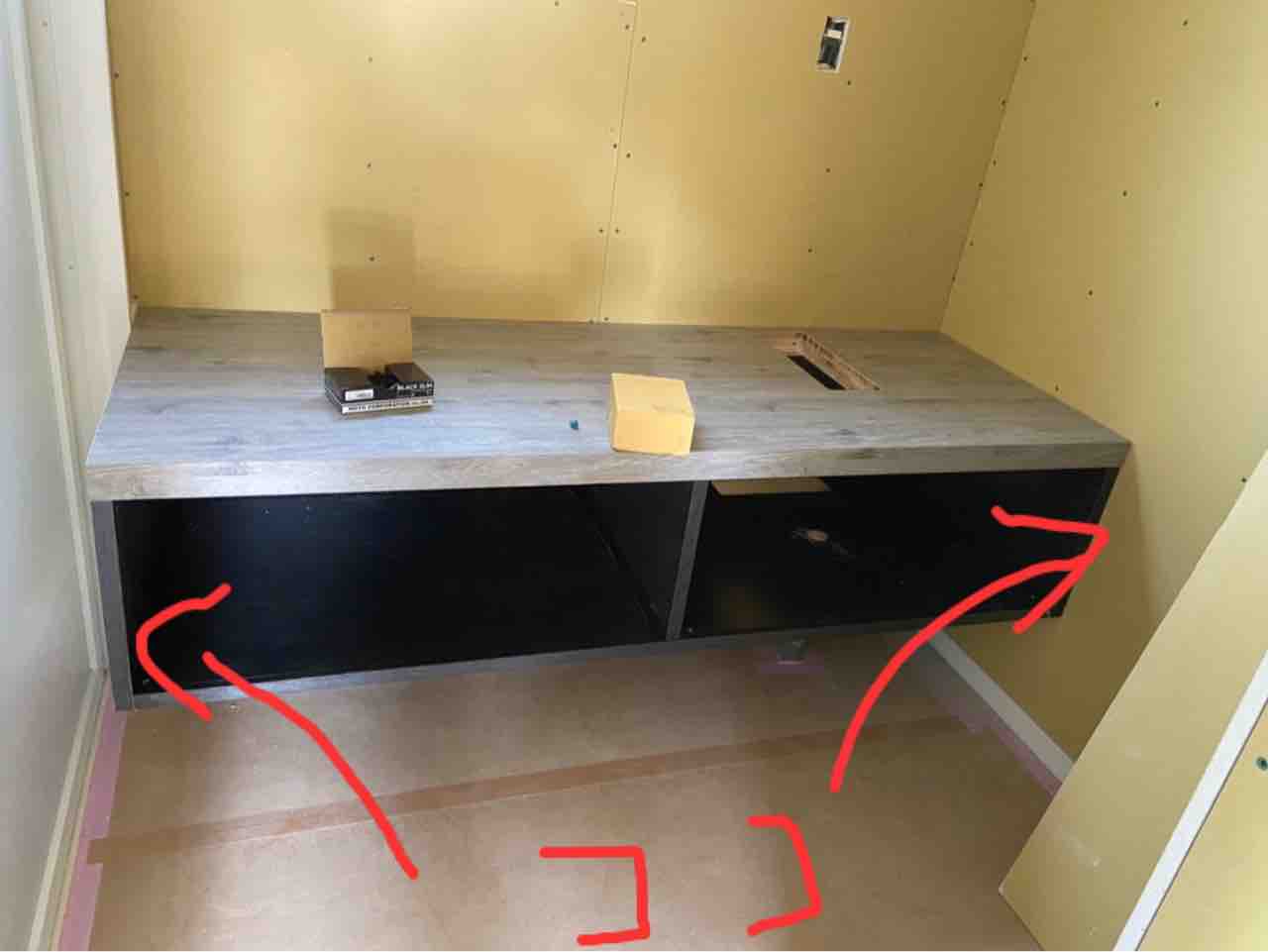 こんな感じで下の収納部分を切ってしまおうか、、、