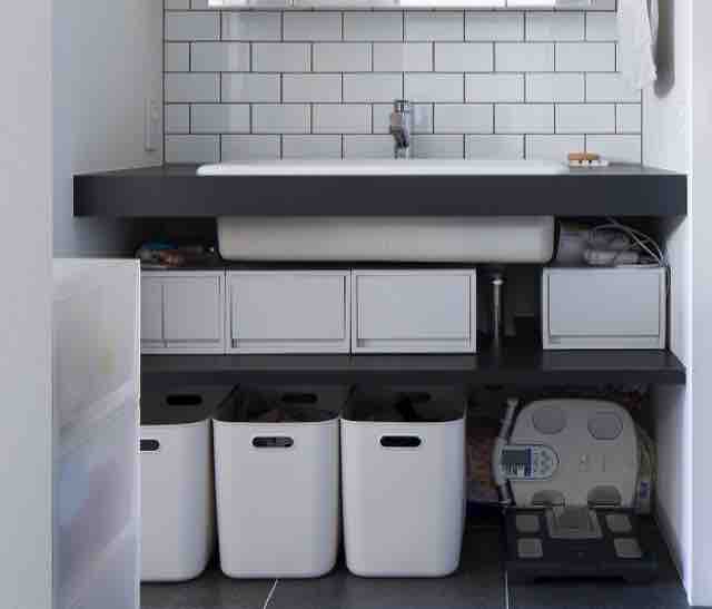 浴室側のカウンターの下に空間が出来るのでスッキリするかも