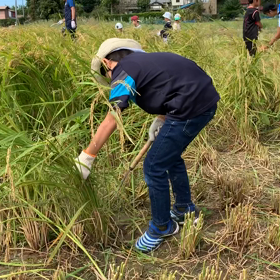 田んぼ遠足 稲刈り中!!
