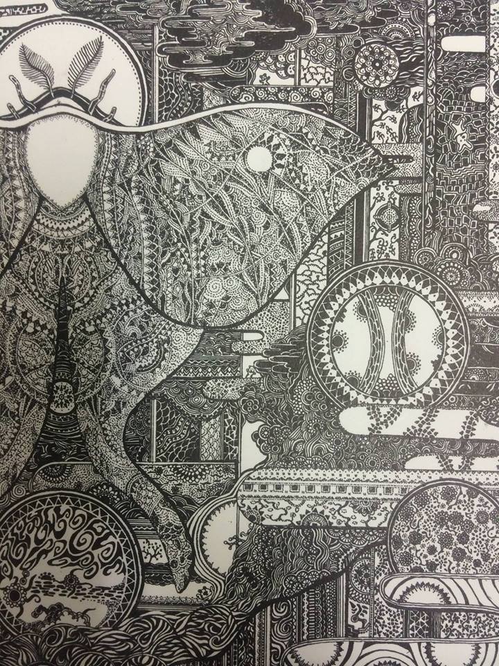 ボールペンで、ほぼ白と黒で独特な世界観を表現しています。