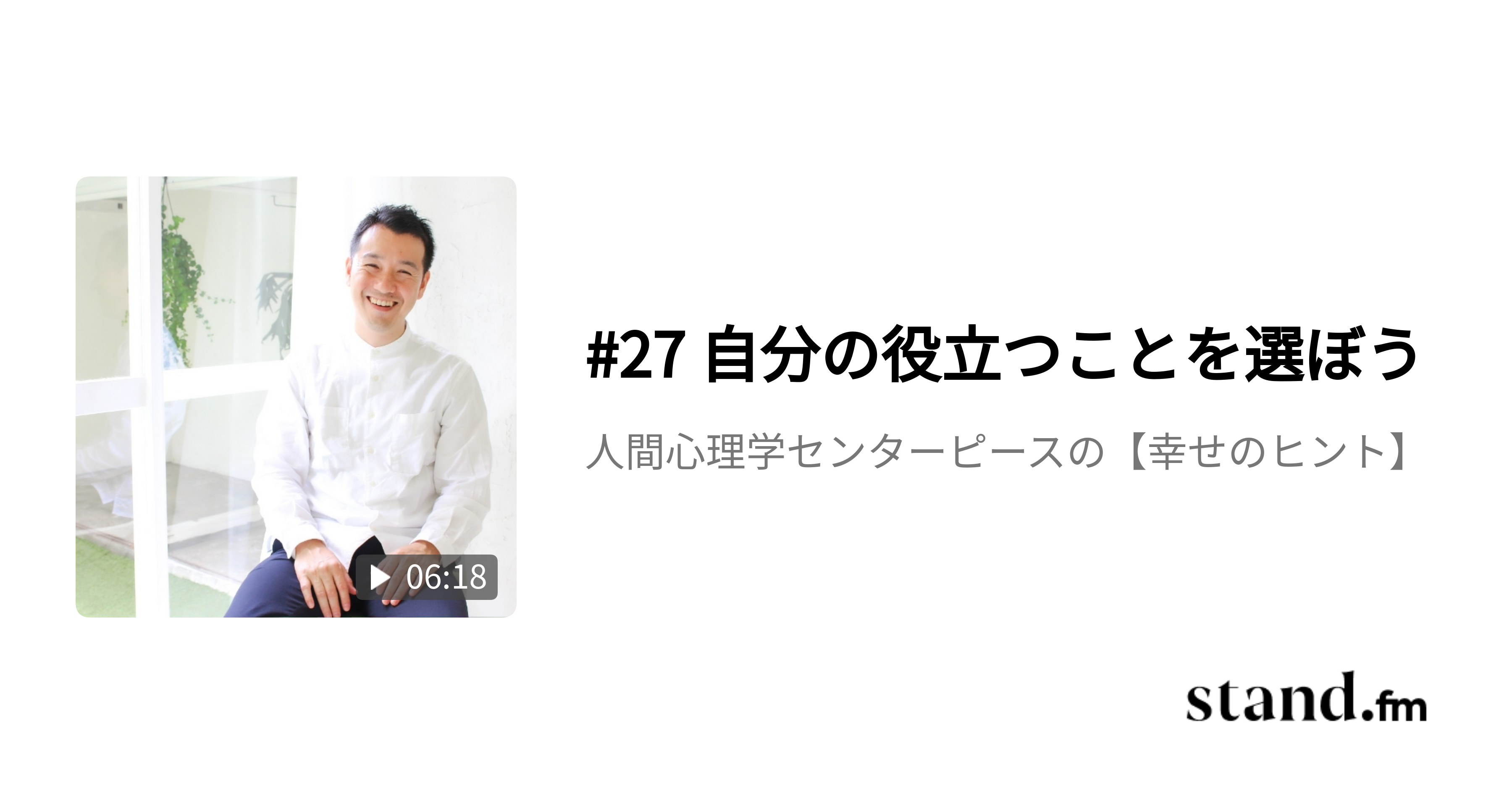 自分に役立つことを選ぼう勇気を出して一歩前に進む。『怖い』を笑って誤魔化しながらでも。https://stand.fm/episodes/640537b947698b37ade4871a#27 自分の役立つことを選ぼう - 人間心理学センターピースの【幸せのヒント】 | stand.fm#センターピース#やっさんstand.fm#おはよー
