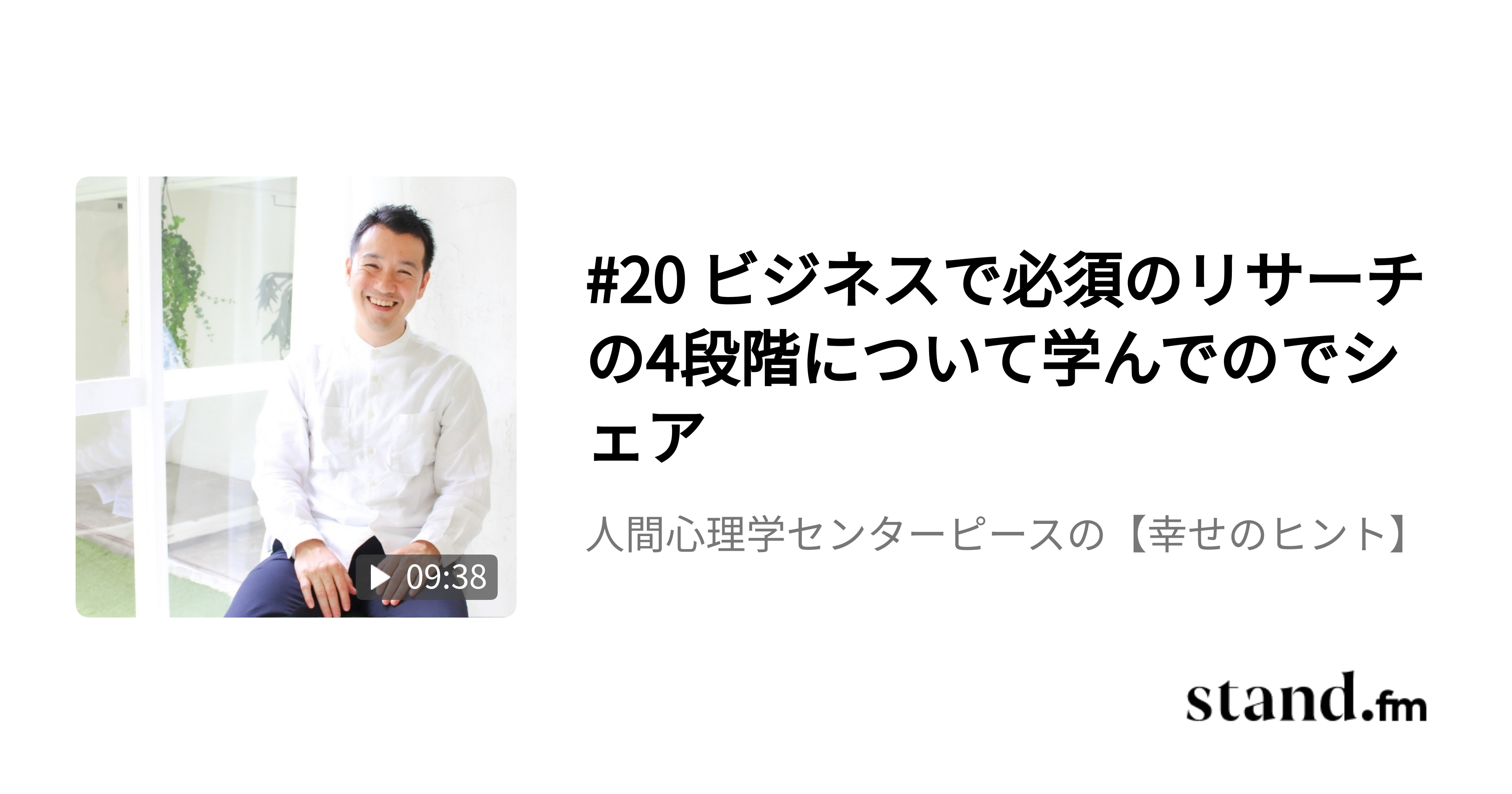 #20 ビジネスで必須のリサーチの4段階について学んでのでシェア - 人間心理学センターピースの【幸せのヒント】 | stand.fm#センターピース#CP #やっさん#エッセンシャルコーチング#リサーチstand.fm