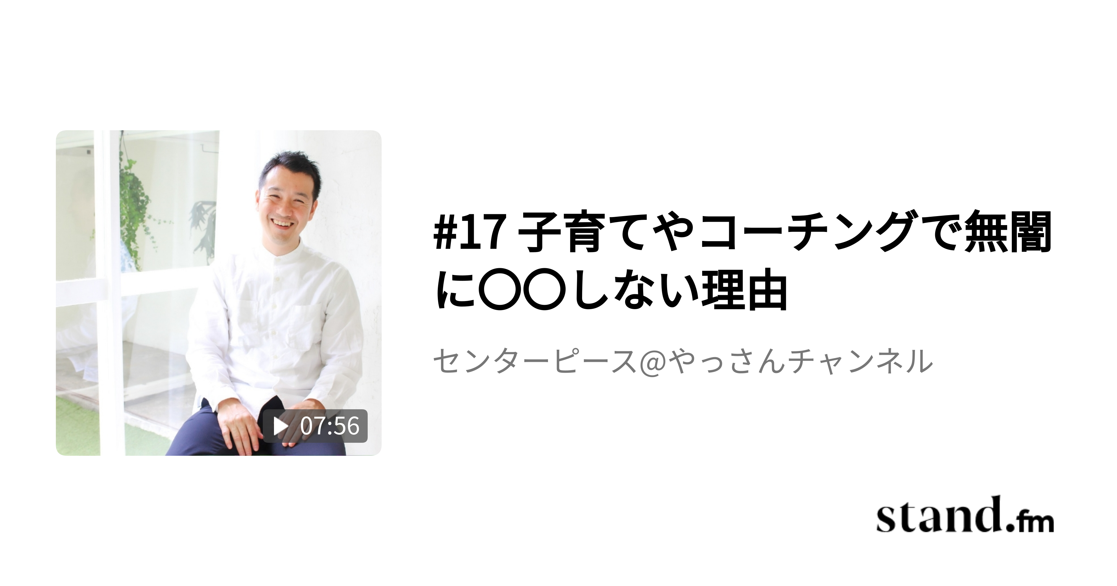 #17 子育てやコーチングで無闇に〇〇しない理由 - センターピース講師やっさんの【幸せのヒント】 | stand.fm#センターピース#CP#コーチング#エッセンシャルコーチング#やっさんstand.fm