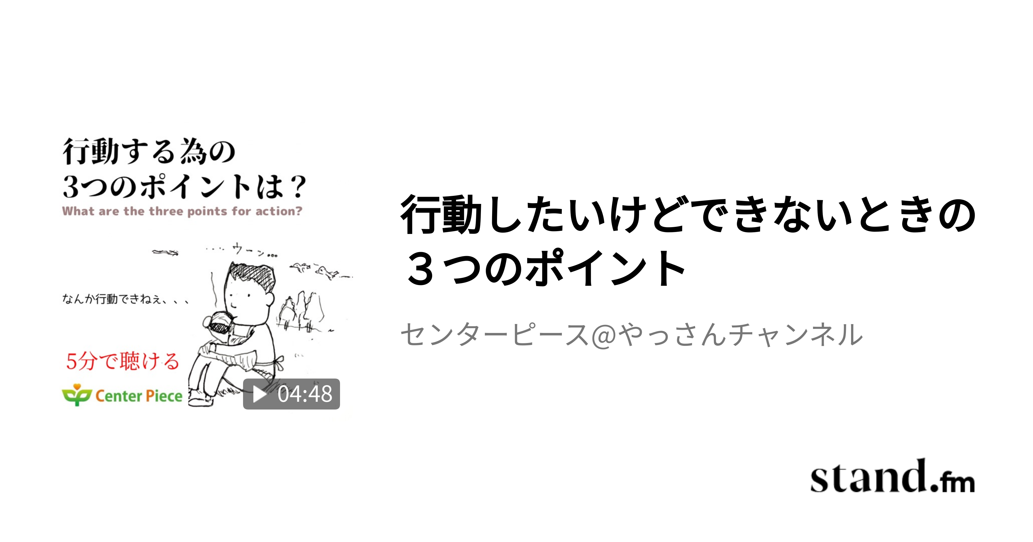 行動できない時の3つの対処ポイントやりたい事はあるけれどなーーんか行動できないそんな時の対処法。行動したいけどできないときの3つのポイント - センターピース@やっさんチャンネル | stand.fm#センターピース#やっさん#人間心理学stand.fm