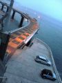 歩道もない橋の上、彼は欄干の外側を歩いて行ったのでしょうか?